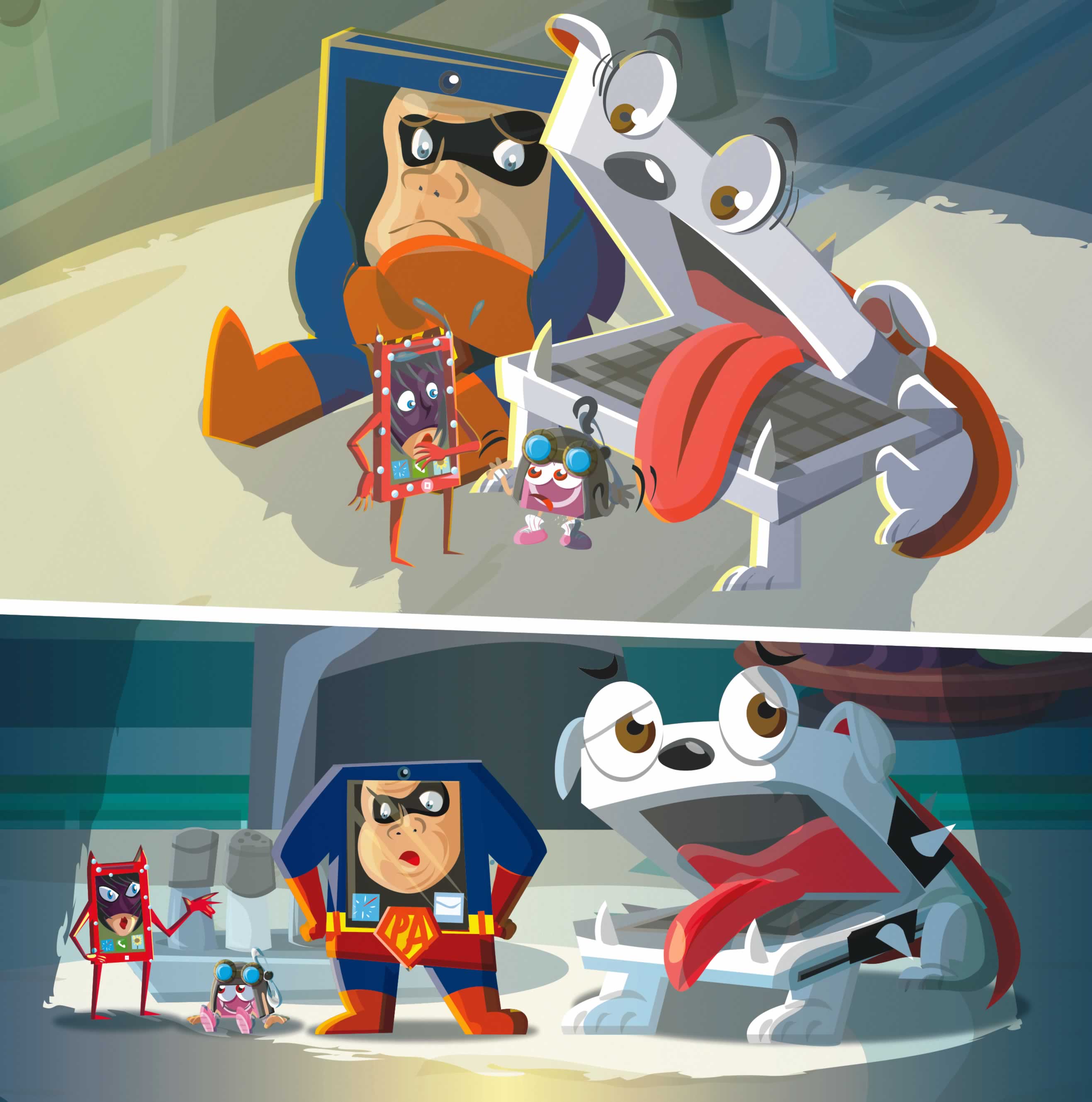 The Goog switches himself back to sleep mode, and softly the Heroes creep back to their respective charge cradles. Lapdog is relieved. Jacob has been secretly playing online all weekend with his neighbour’s unsecured WiFi. His power is now down to 12 percent.