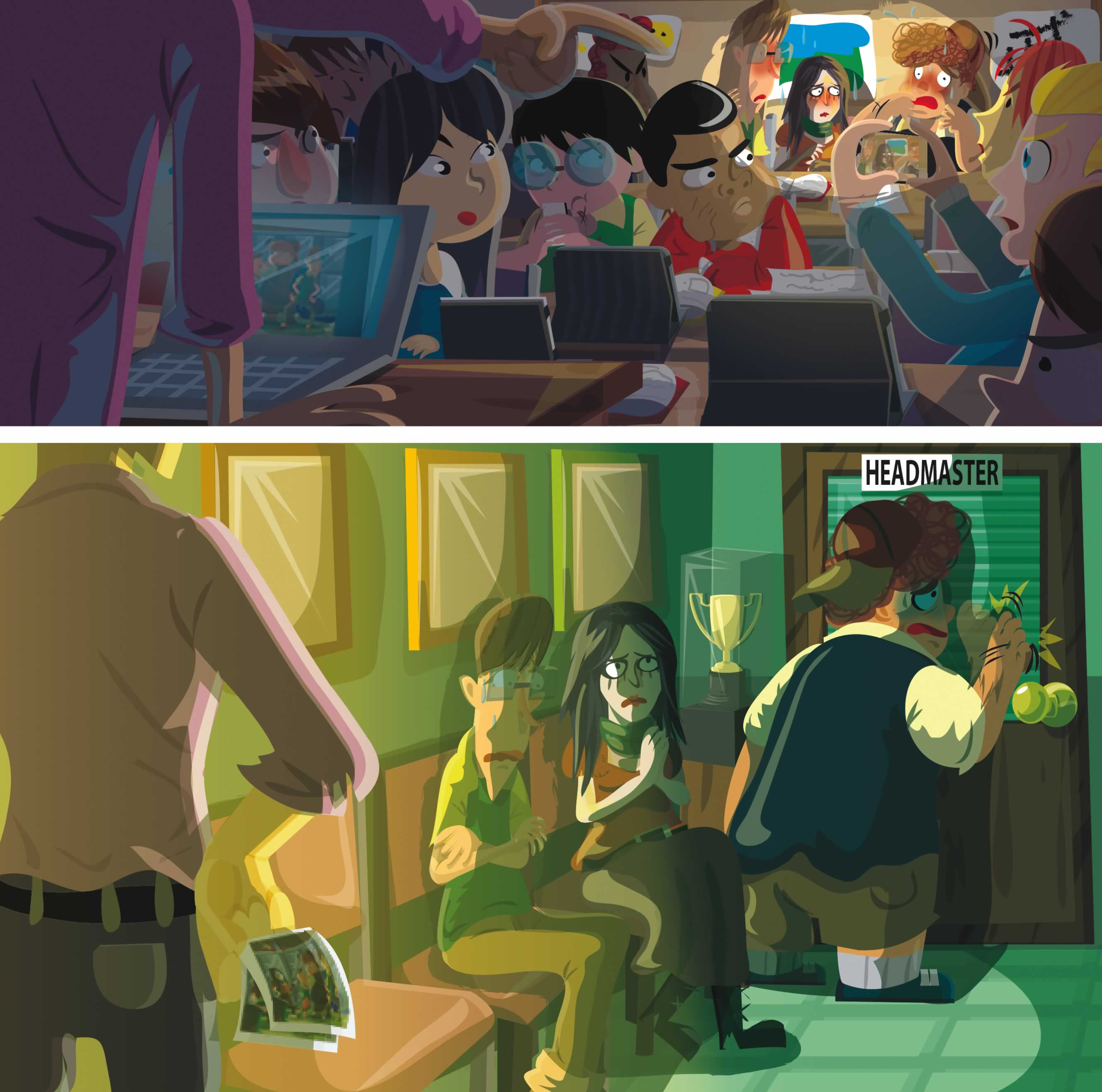 Meanwhile, back at school, the video is received by every teacher in the email list. Within minutes the school counsellor is heading straight for the bullies’ class. “Terry, Violet and Leon … come with me,” he says sternly, then promptly marches the trio of thugs directly to the headmaster’s office.